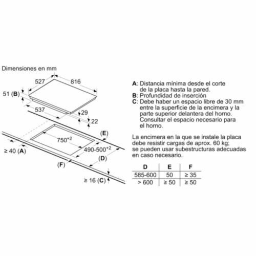 • Dimensiones aparato (alto, ancho, fondo):51 x 816 x 527 mm.