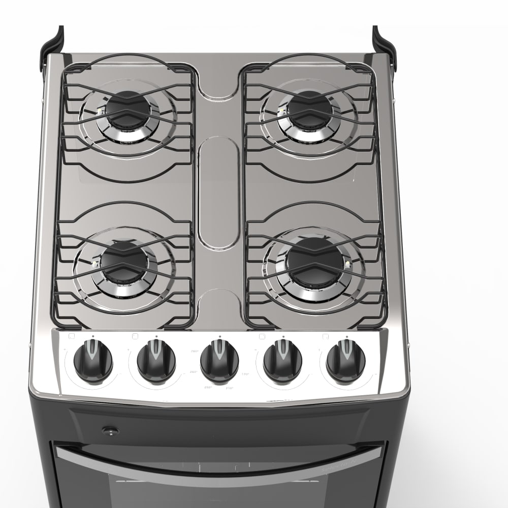 • 4 quemadores a gas o supergas, con tapas enlozadas y esparcidor en acero inoxidable.