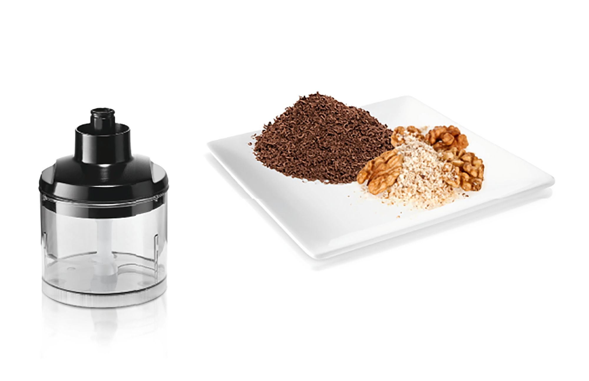 • Fácil limpieza: tanto el pie de la batidora, la varilla batidora, y el picador (excepto la tapa), se pueden lavar en el lavavajillas.